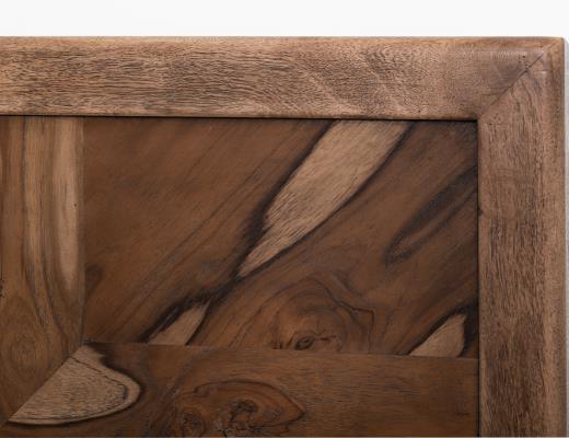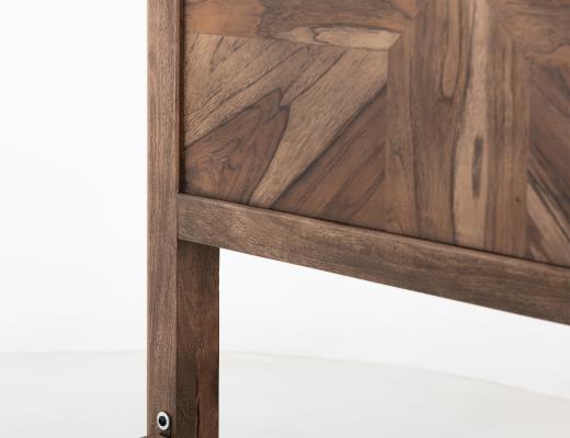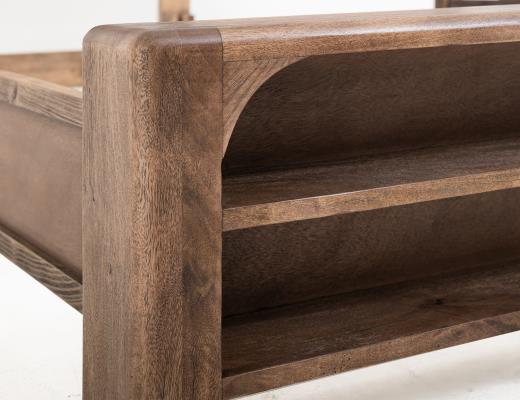 Transform your space with this modern bedroom set. Crafted from engineered teak and sustainable mango wood, this collection combines lasting durability with natural beauty. The rich brown multi-step lacquer finish adds warmth and depth to the furniture. Featuring a functional footboard with storage, this all-solid wood bedroom furniture is ideal for those seeking to blend modern design with practical features.